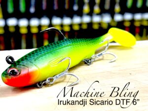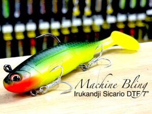 Irukandji’s Signature Paddle Tail Swim Bait is right here….and in the BEST COLOUR EVER….Machine Bling! Designed to impart an enticing body roll and tail action when retrieved at low speeds. Perfect for most tackle destroying predatory sportfish such as Barra, Jew, Flathead, Murray Cod and more. Features a deep belly slot for weedless rigging.